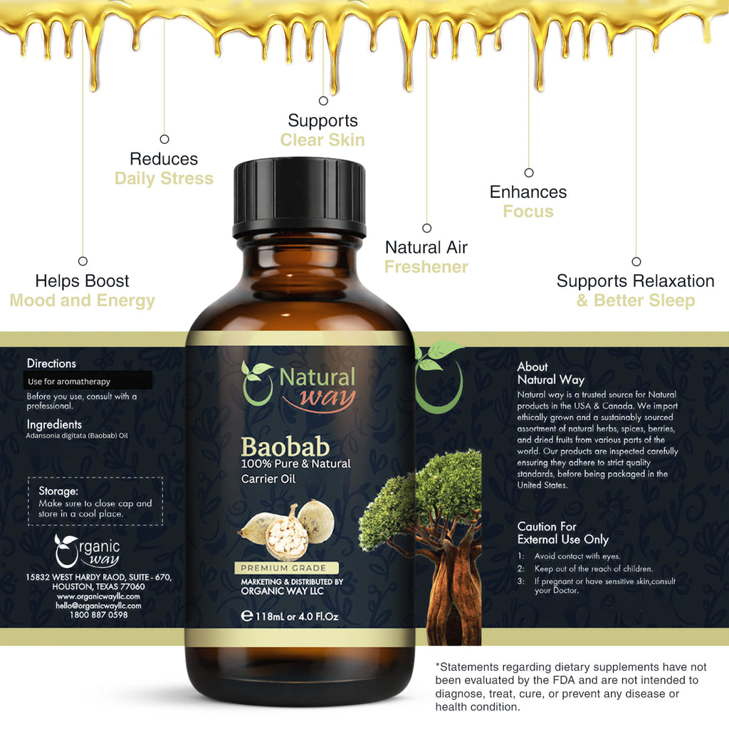 Baobab Essential Oil for Diffusers | Natural Aroma Oil for Home Fragrance, Humidifier & DIY Candle Making, Long Lasting Scent for Office, Bedroom & Soothing Scent 4 Fl Oz (120 mL)
