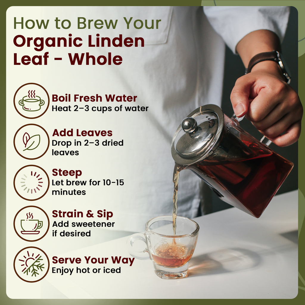Experience the gentle aroma and soothing flavor of Linden Flower and Leaf Herbal Tea Blossoms a timeless botanical known for its natural fragrance and delicate floral taste. Carefully dried to preserve its freshness and color, these premium linden blossoms with leaves make a delightful loose-leaf herbal tea that can be enjoyed hot or cold. Each cup brings a smooth, slightly sweet floral note that pairs beautifully with honey, lemon, or your favorite herbs for a comforting and aromatic beverage. Our linden flower tea is made from naturally dried linden blossoms and leaves, ideal for creating a pure and refreshing tea experience. It can be brewed as a standalone herbal tea or blended with other floral teas like chamomile, rose, or lavender for a unique infusion. This loose-leaf herbal tea is naturally caffeine-free, making it perfect for any time of the day. The soft aroma and golden color of the infusion bring a sense of calm to your tea moments, offering a truly enjoyable beverage experience. Perfect for tea lovers and floral tea enthusiasts, Linden Flower and Leaf Herbal Tea Blossoms are also a beautiful addition to homemade tea blends, potpourri, or herbal sachets. Each batch is carefully packed to maintain purity, aroma, and freshness. Whether you’re exploring new herbal teas, searching for a gentle floral tea, or creating handmade tea gifts, this linden tea is a versatile and aromatic choice that fits every occasion. linden flower tea, dried linden blossoms, herbal tea, loose leaf tea, linden leaf tea, floral tea, caffeine free tea, organic herbal tea, dried linden flowers, natural tea, aromatic herbal blend, tea gift, soothing herbal tea, relaxing floral tea, traditional herbal infusion.