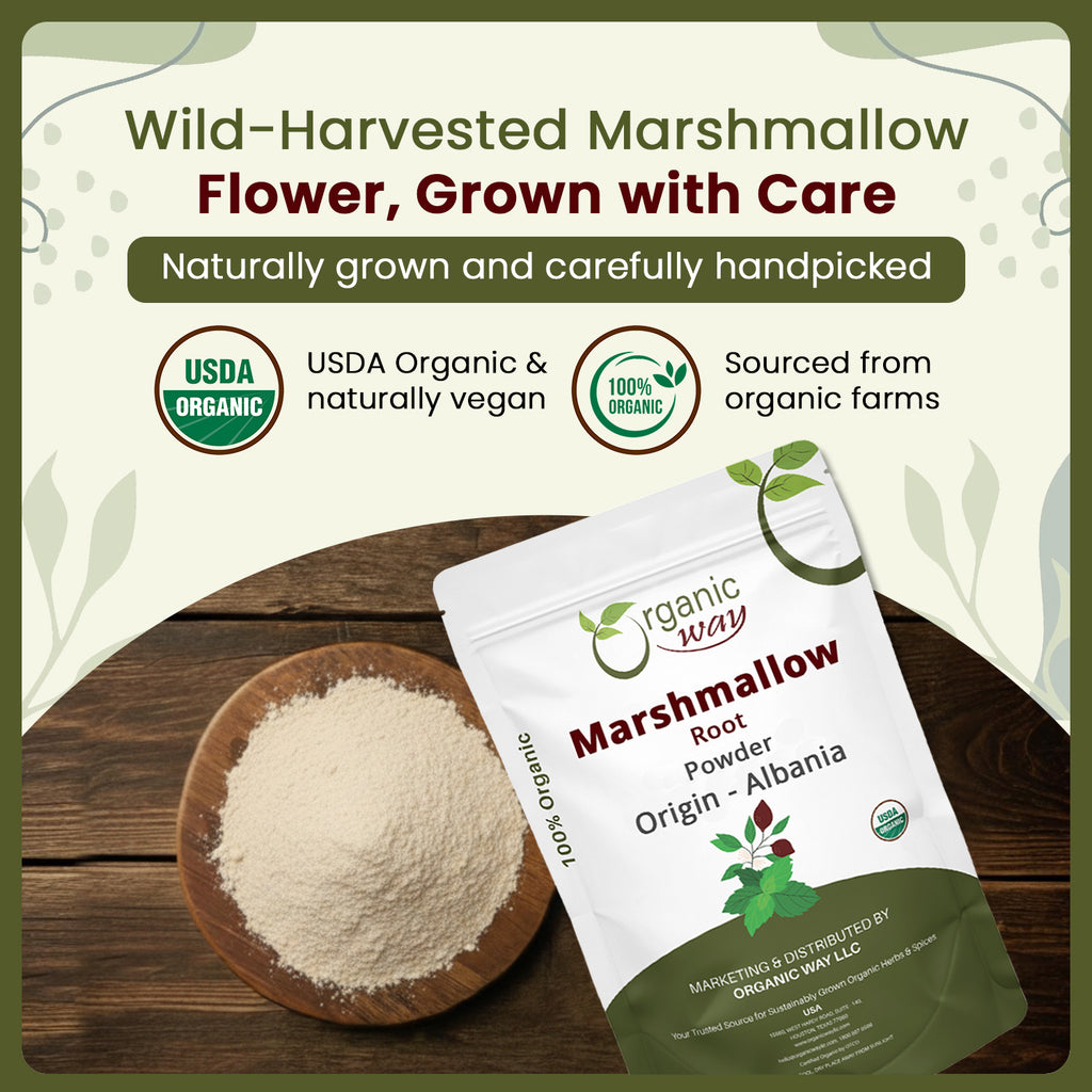 Marshmallow Root Powder (Althaea Officinalis) - Herbal Tea | European Wild-Harvest | Kosher Certified | Vegan, Non GMO & Gluten Free | USDA Certified | Origin - Albania