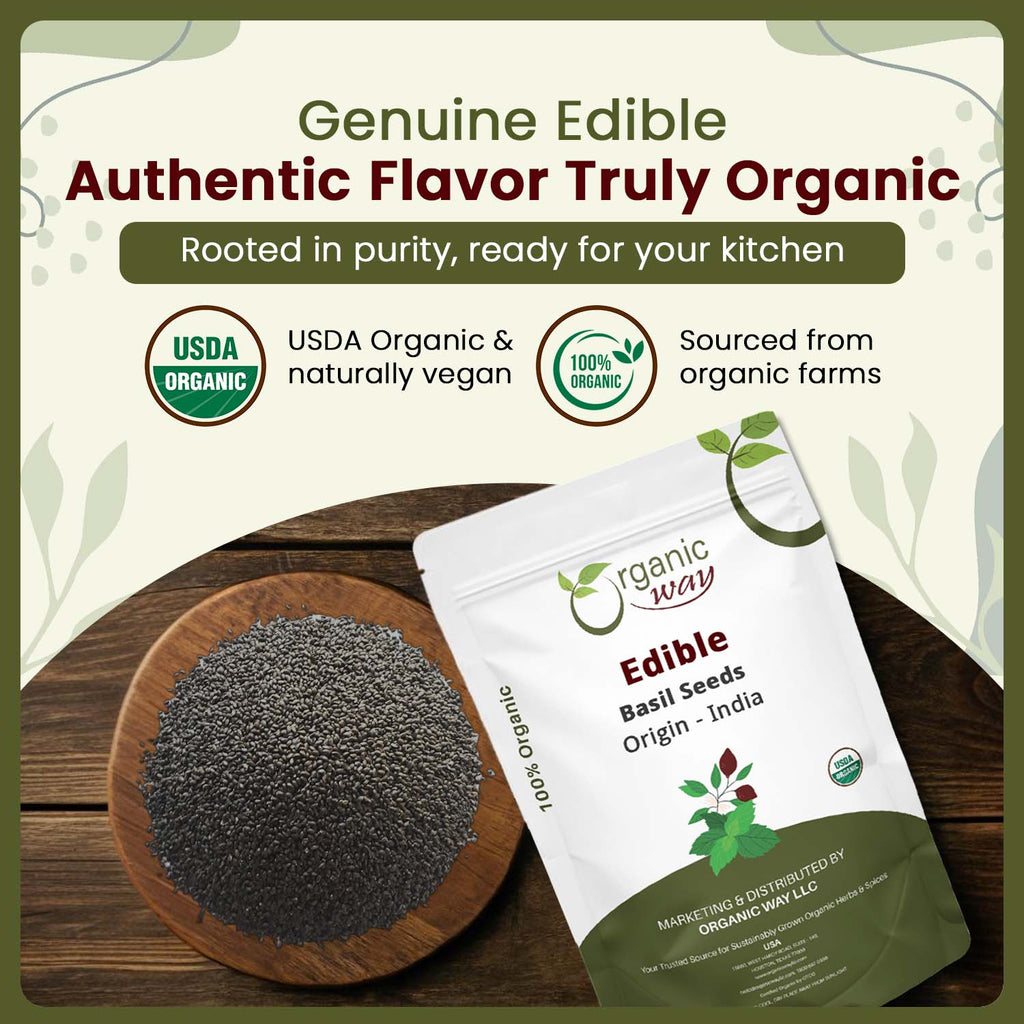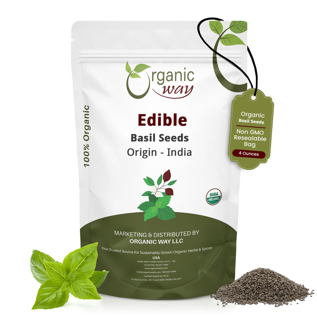 Discover the incredible taste of Organic Way Edible Basil Seeds, Our seeds are sustainably sourced from Albania ensuring you get the highest quality. Packed in a Resealable Bag, these seeds are a great addition to a healthy taste. When soaked in water, the seeds form a gelatinous coating, creating a unique texture perfect for various recipes. Two tablespoons of these organic seeds provide 15g of fiber, making them a nutritious addition to your daily diet. Add them to smoothies, oatmeal, yogurt, salads, sauces, soups, and jams.