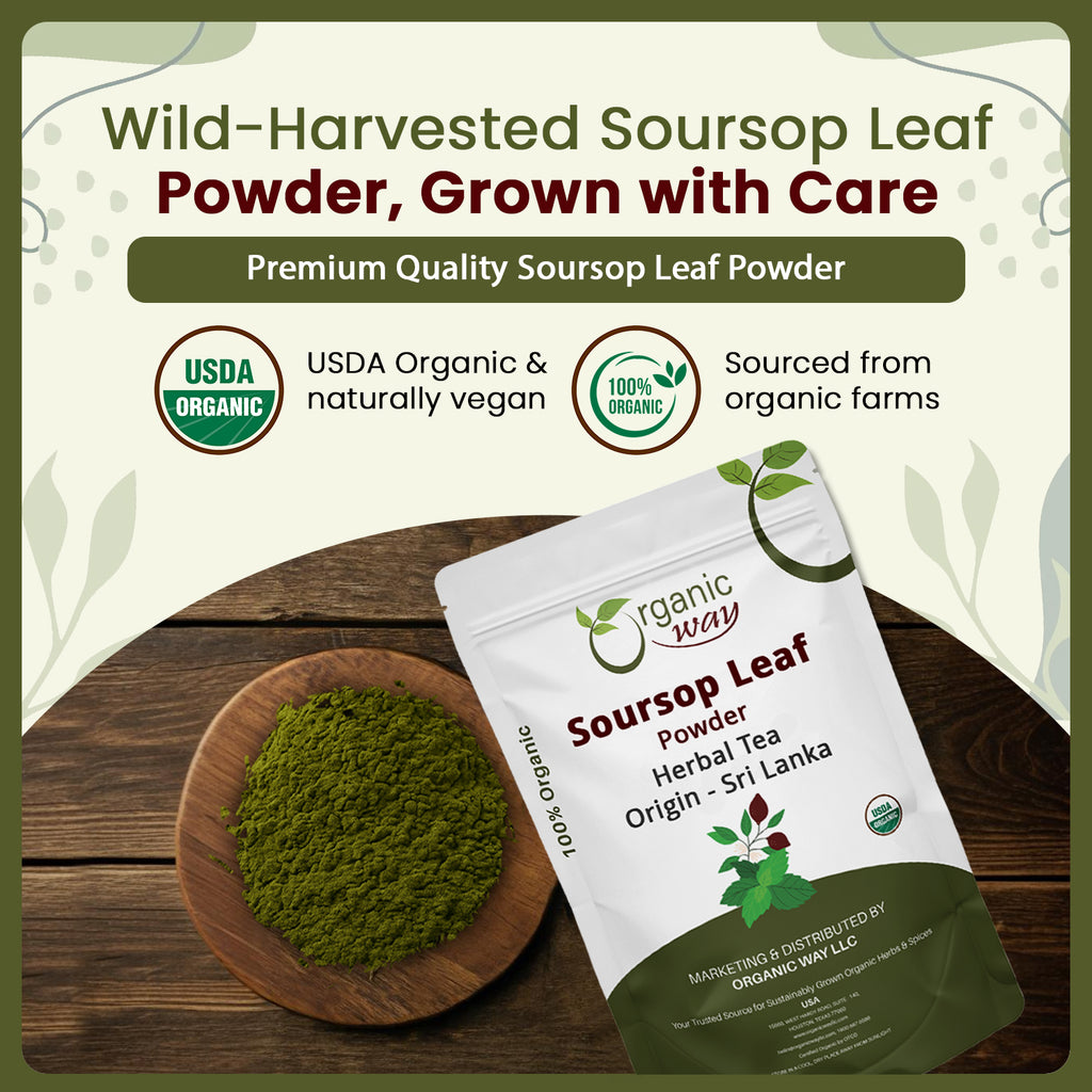 Discover the natural richness of Soursop Leaf Powder, made from carefully handpicked and dried soursop leaves for a fresh, authentic flavor. This finely ground powder is a convenient alternative to whole sour sop leaves, offering all the aromatic depth you love without the extra preparation. Ideal for making soursop tea, brewing organic loose leaf green tea blends, or adding a unique earthy note to smoothies, desserts, and culinary creations. Perfect for tea lovers, our powder allows you to brew soursop leaf tea in minutes—just add hot water and enjoy. You can also blend it with other herbal teas to create your own signature sour sop tea organic mixes. Its smooth texture makes it a versatile addition to both hot and cold beverages, while its vibrant aroma adds an exotic touch to your kitchen. Packed in a resealable pouch, this pure leaf tea stays fresh for longer, maintaining its color, aroma, and flavor. Whether you’re exploring traditional soursop tea recipes or trying modern twists, you’ll find endless ways to enjoy its distinctive taste. From iced soursop tea leaves to warm comforting brews, this powder adapts to your preferences with ease. Beyond tea, Soursop Leaf Powder can be incorporated into baking, cooking, and homemade blends. Mix it into cake batters, infuse it into syrups, or pair it with other superfood powders for creative beverages. Convenient, aromatic, and versatile, this soursop tea powder is a must-have for anyone who enjoys natural flavors, organic loose leaf green tea styles, and unique herbal blends. Bring home the taste of soursop and experience a world of possibilities in every spoonful.